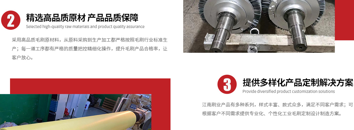 潛山江南刷業(yè)有限公司生產汽車噴涂鴕鳥毛毛刷,鋁板脫脂線輥刷,鋁板去氧化皮輥刷,淬火爐爐內輥,無紡布擠油輥擠干輥,無紡布真空吸油輥,電加熱打孔針輥等,以及各類涂油滾&膠輥&海綿滾&不織布輥、密封刷&鋼刷式密封、輸送帶刷式清掃器&牛體刷、鋼絲刷條&鋼絲板刷、PVC毛刷板&尼龍毛刷條、打孔鋁針輥&打孔銅針輥、圓形滾刷毛刷輥系列、圓形鋼刷&鋼絲刷輥、拋光毛刺磨料刷、試管刷&管道刷等各類刷制品。江南刷業(yè)注重...